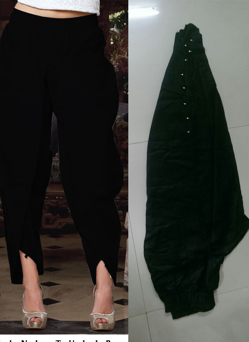 Black Cotton Satin Pakistani Tulips Pants at Zikimo