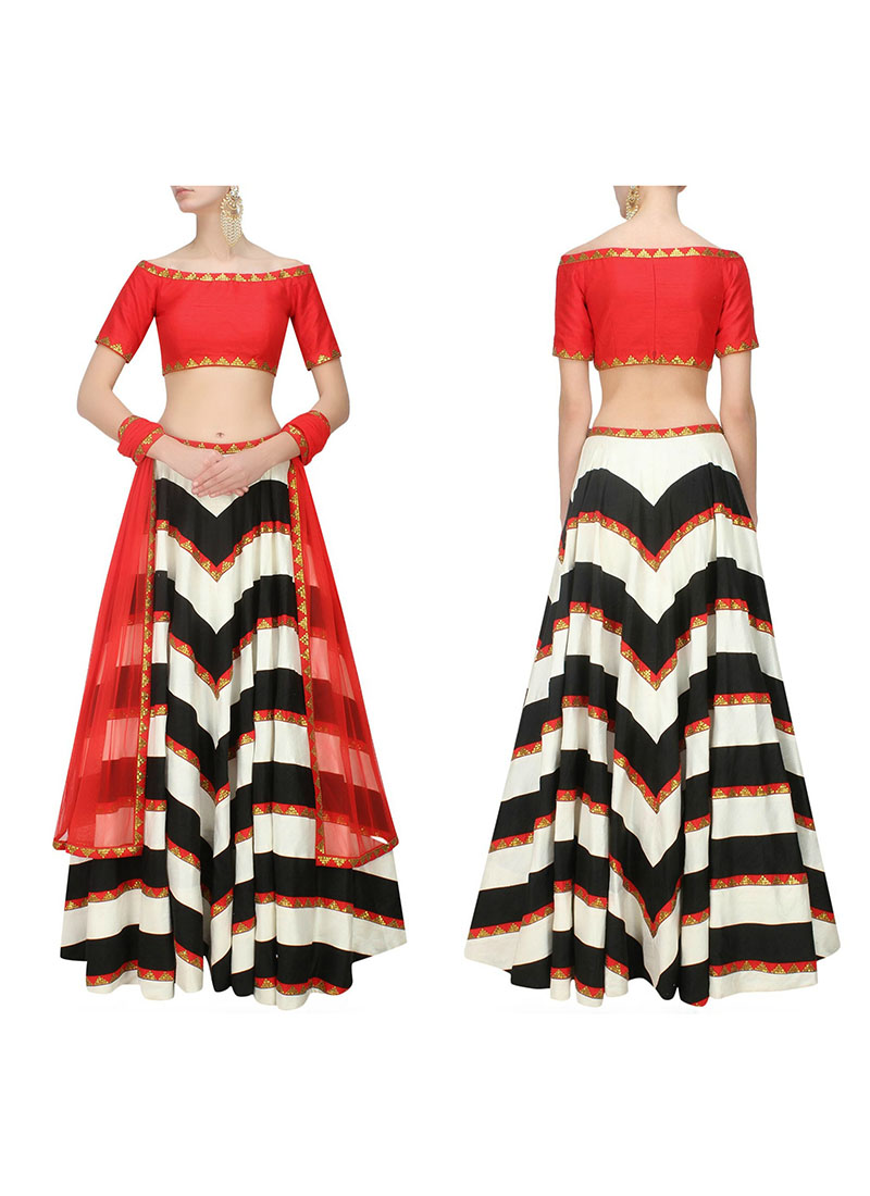 Black white RawSilk DigitalPrinted Embroidered Navratri Lehenga Choli at Zikimo - Zikimo.com - Original Indian Bridal Lehengas Collection