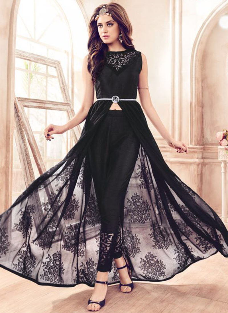 Black4110 Net Jacquard PartyWear PencilPants Suit at Zikimo - Zikimo.com - Original Indian Bridal Lehengas Collection