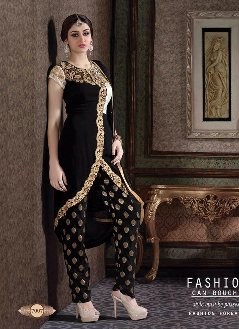 Black7007 Embroidery Georgette WeddingParty Frontcut Pants Suit at Zikimo - Zikimo.com - Original Indian Bridal Lehengas Collection