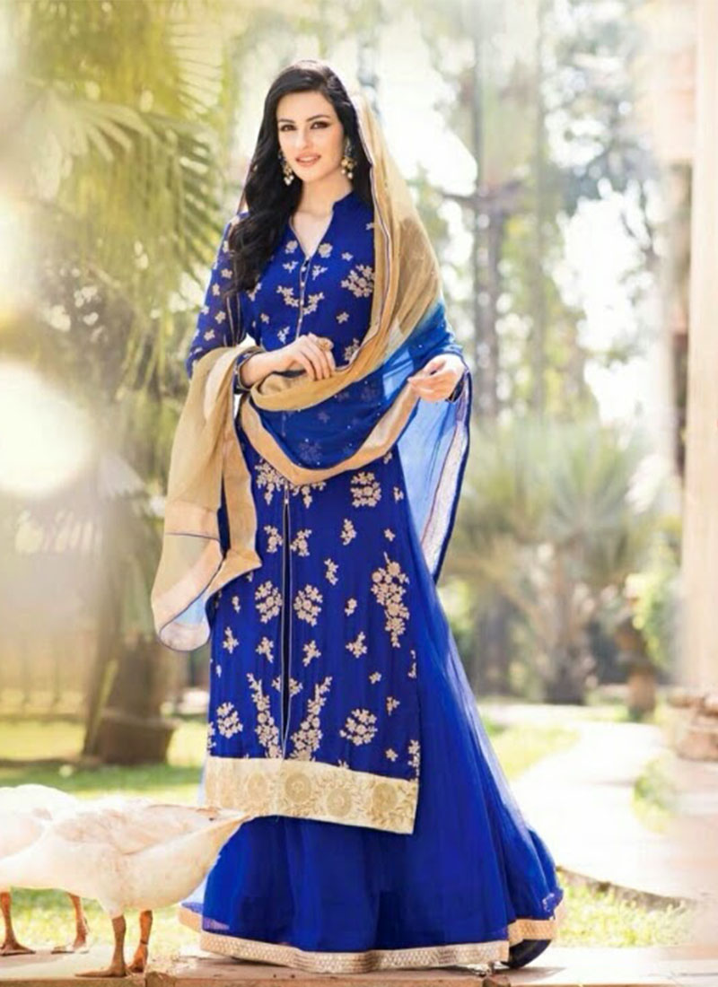 Blue Georgette Full Embroidered FrontcutWedding Lehenga Choli at Zikimo - Zikimo.com - Original Indian Bridal Lehengas Collection