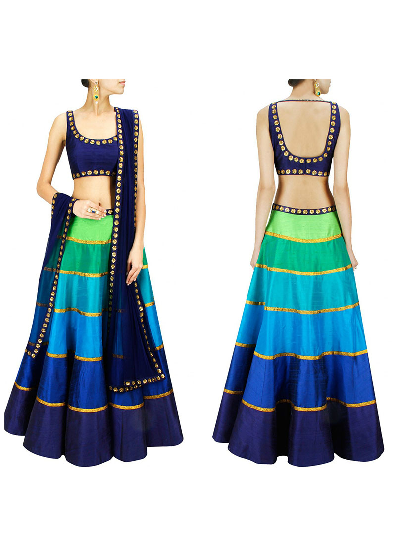 Blue Green RawSilk DigitalPrinted Navratri Lehenga Choli at Zikimo - Zikimo.com - Original Indian Bridal Lehengas Collection