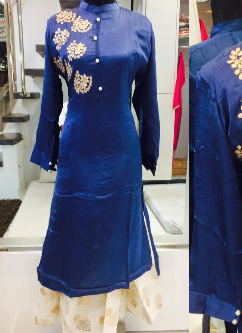 Raw Silk Embroidery work Done On Top With Georgette Brocade Lehenga Note: This is Made On Order Dress and needs to be fitted and stitched according to your size. If You Opt Stitching Option, Measurement chart will send to you via email after placing order.