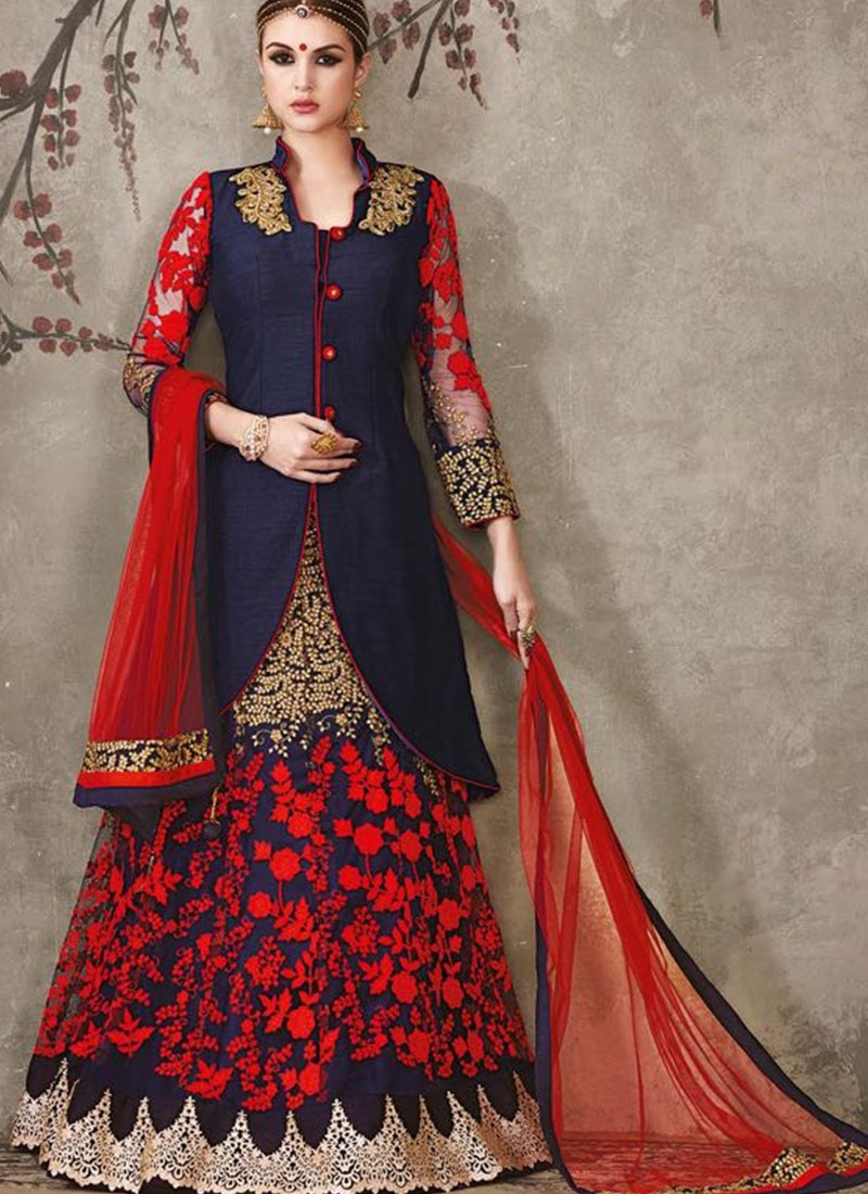 BlueRed2306 Net Silk Embroidery Wedding/Sangeet Party Lehenga choli at Zikimo - Zikimo.com - Original Indian Bridal Lehengas Collection