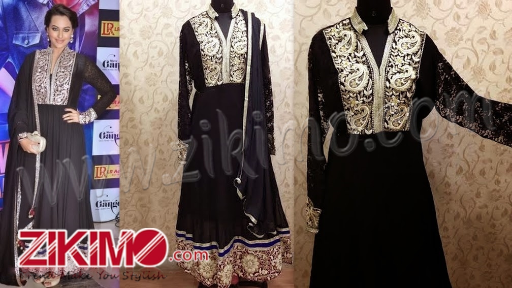 Bollywood Sonakshi Sinha Black Anarkali Suit - Zikimo.com - Original Indian Bridal Lehengas Collection