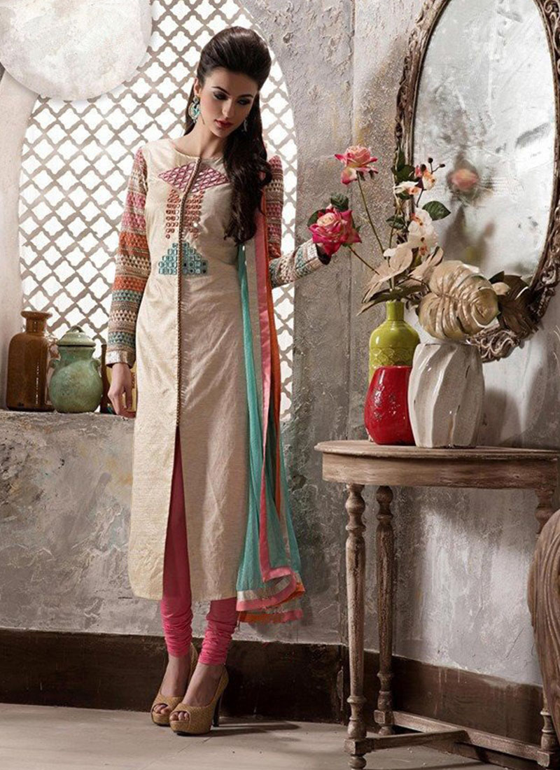 Creamish With Pink Cotton Front Cut Wedding Party Wear Suit at Zikimo - Zikimo.com - Original Indian Bridal Lehengas Collection