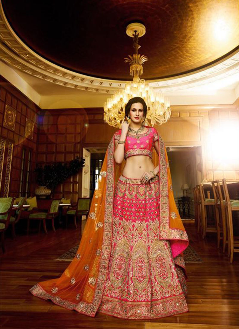 DarkPInk1334 Resham, Sequins,Stone,Diomond,Cutdana,Kasab Work RawSilk Weding Lehenga at Zikimo - Zikimo.com - Original Indian Bridal Lehengas Collection