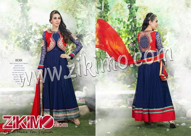 Firoza Karishma Kapoor Blue Net with Red Jacket Embroidered Wedding/Party Wear Anarkali Suit - Zikimo.com - Original Indian Bridal Lehengas Collection