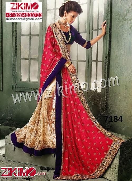 Gorgeous Silky Georgette Net Sequence Saree with Velvet Blouse - Zikimo.com - Original Indian Bridal Lehengas Collection