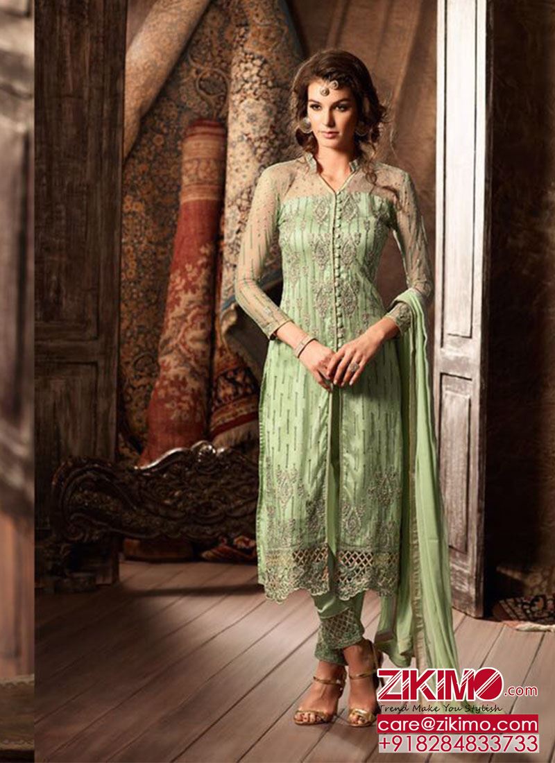 Net Top With Satin Bottom And Chiffon Dupatta.Note: This is Semistitched and needs to be fitted and stitched according to your size. If You Opt Stitching Option, Measurement chart will send to you via email after placing order.