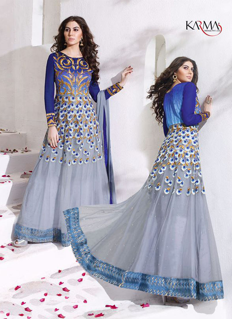 GreyBlue8010 Net Wedding Party Kalidar Anarkali Suit at Zikimo - Zikimo.com - Original Indian Bridal Lehengas Collection
