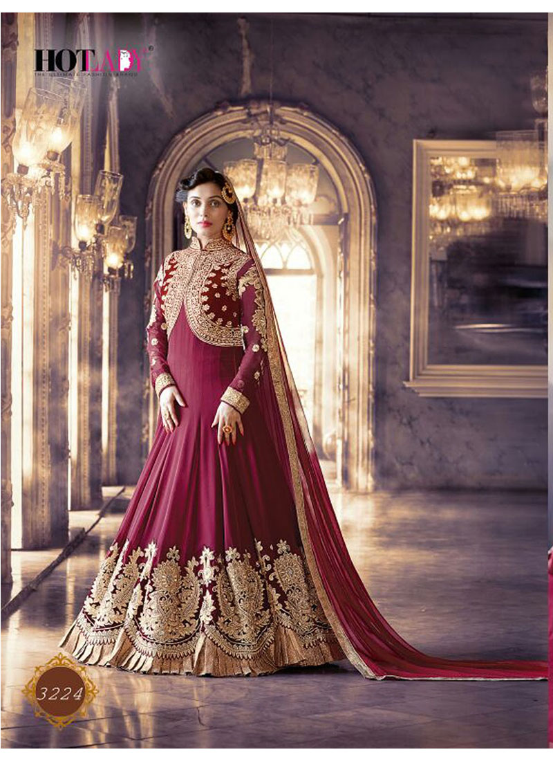 Maroon3224 Wedding Wear SemiStitched Anarkali Suit at Zikimo - Zikimo.com - Original Indian Bridal Lehengas Collection