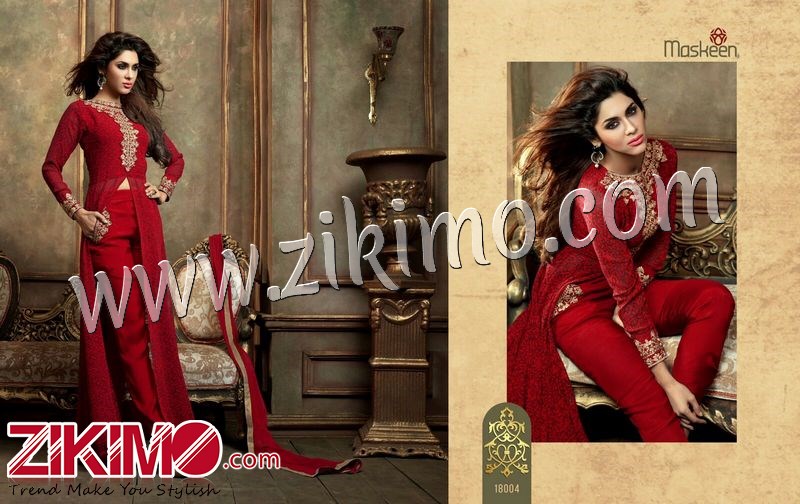 Maskeen Addiction 18004 Red Net Wedding Party Wear Straight Cut Pants Suit - Zikimo.com - Original Indian Bridal Lehengas Collection
