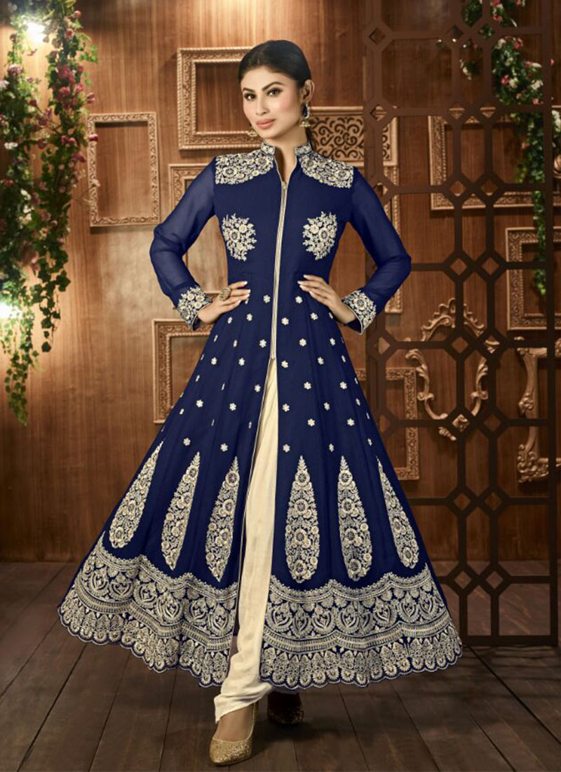 Mony Roy Blue12025 Georgette Embroidered Straight Ankle Length Suit at Zikimo - Zikimo.com - Original Indian Bridal Lehengas Collection