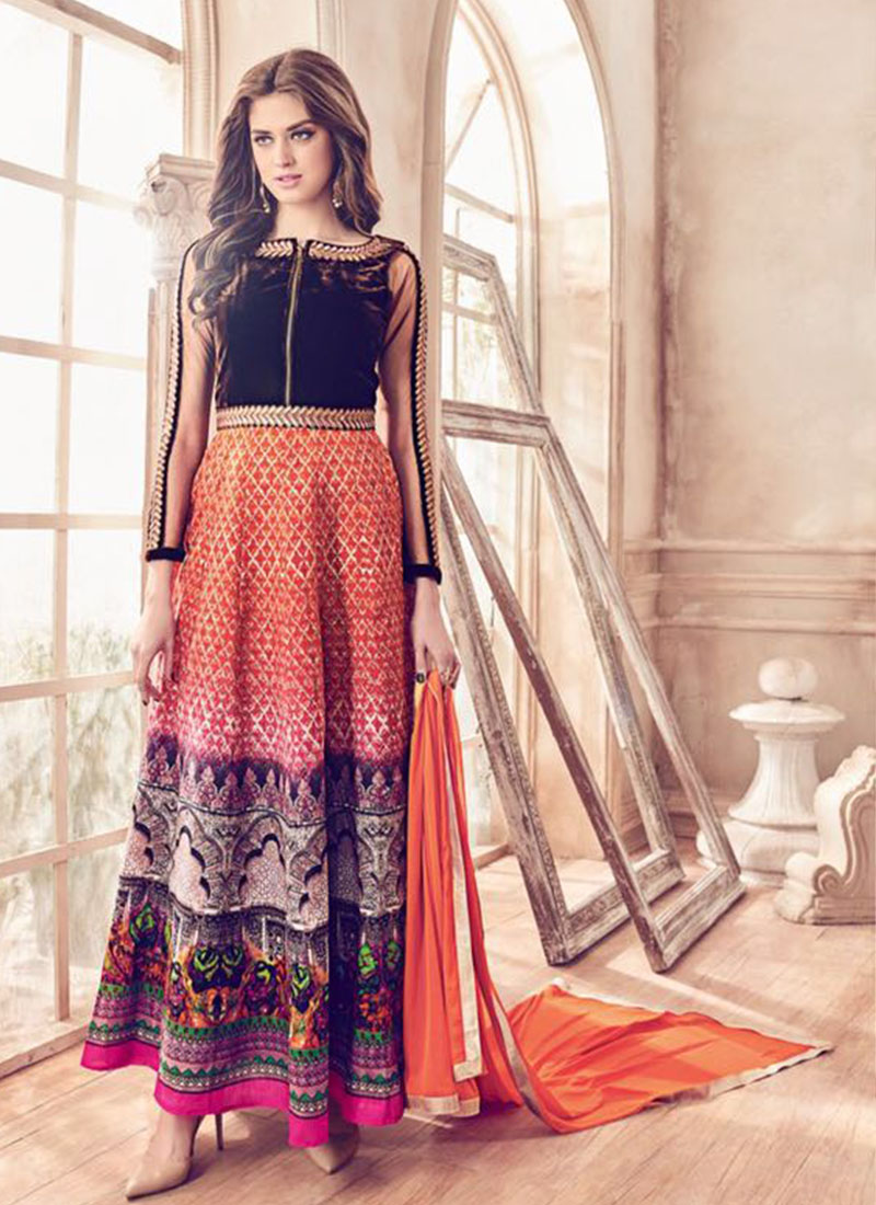 BhagalpuriSilk Top with Shantoon Bottom and Chiffon Dupatta. Note: This is Semi stitched and needs to be fitted and stitched according to your size. If You Opt Stitching Option, Measurement chart will send to you via email after placing order.