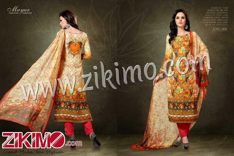 Muse 1404 Pure Pashmina Dark Orange Yellow Digital Printed embroidered Party Wear Straight Suit With Pure Dupatta