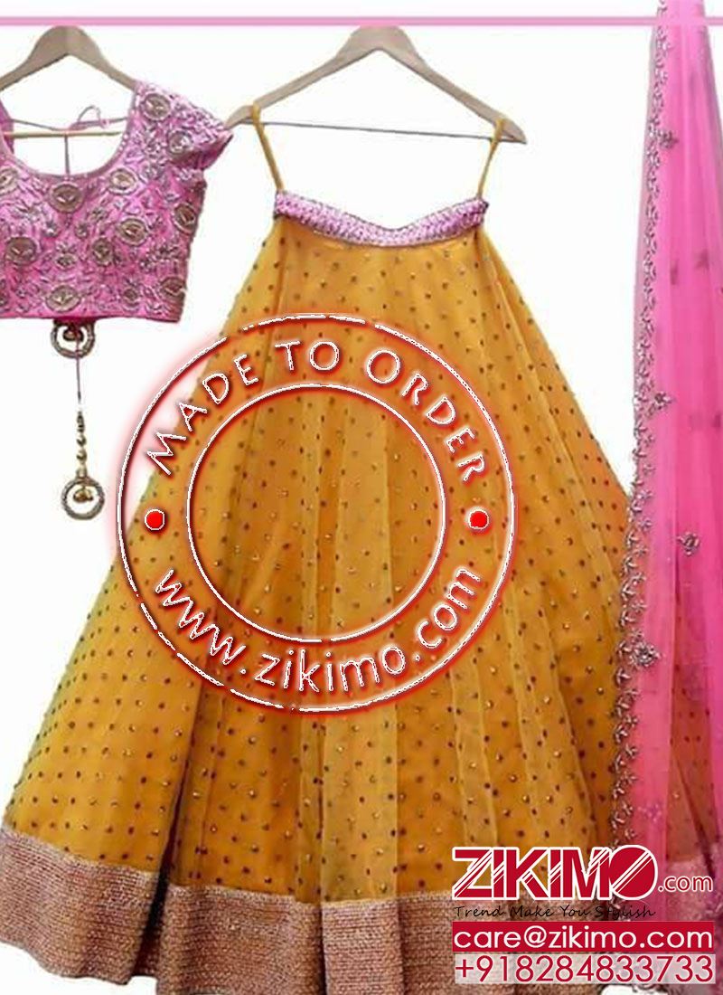 Mustard Pink38641Net Gottawork Mehandi/Sangeet LehengaCholi at Zikimo - Zikimo.com - Original Indian Bridal Lehengas Collection