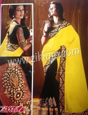 Nakashi Yellow Black Saree - Zikimo.com - Original Indian Bridal Lehengas Collection
