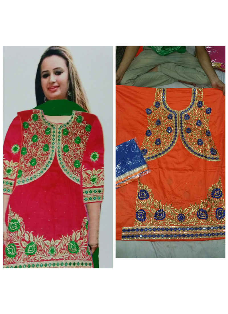 Jam Cotton Silk All Over Punjabi Salwar Suit With Chiffon Duppta.Note: Suit is Unstitched and needs to be fitted and stitched according to your size. If You Opt Stitching Option, Measurement chart will send to you via email after placing order. Contact us for Sticthing Charges.