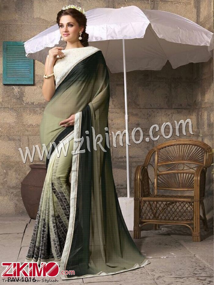 Pavitra Sahiba 1016 White and MulticolorParty Wear/Daily Wear Goergette Saree with Traditional Lace & Blouse Piece