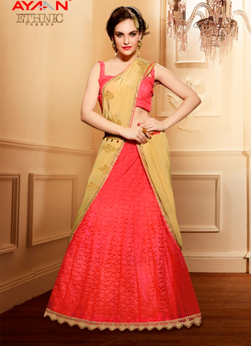 PeachBiege205 Net Silk Indian Wedding Lehenga Choli at Zikimo - Zikimo.com - Original Indian Bridal Lehengas Collection