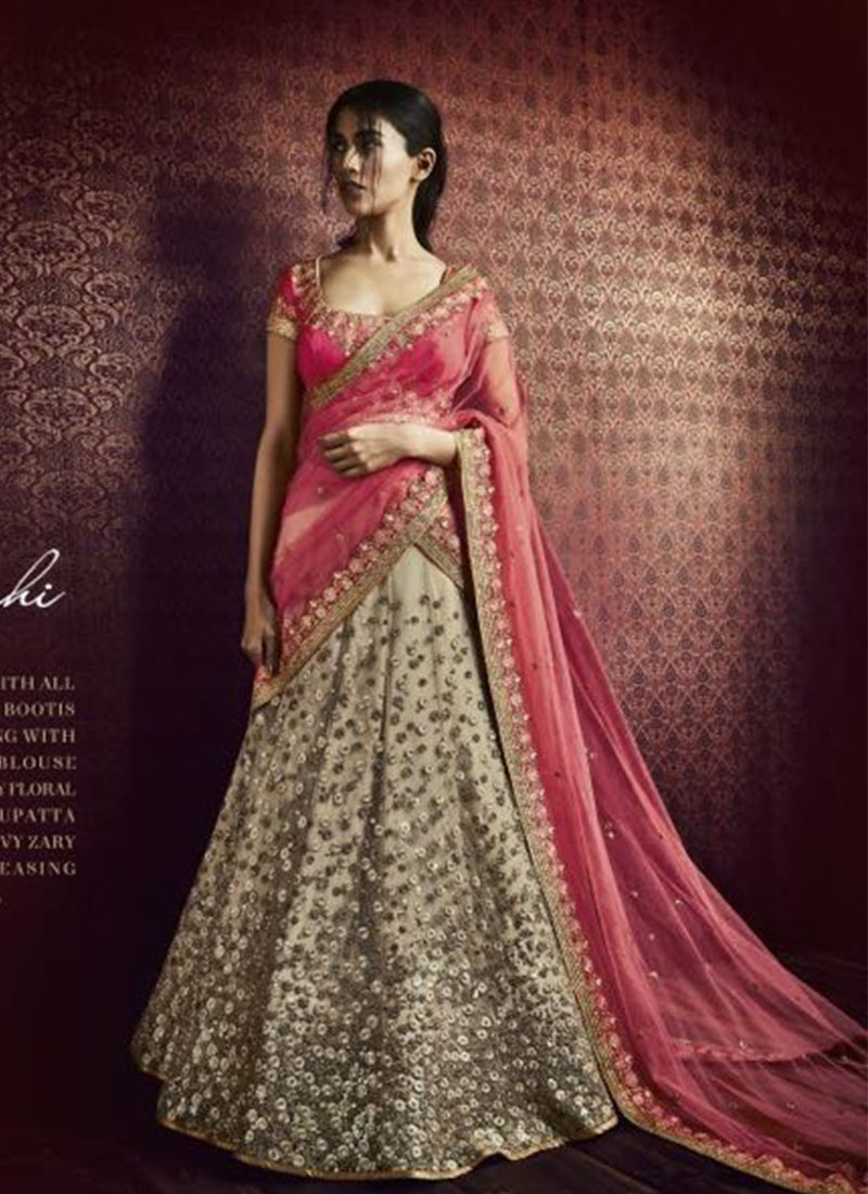 Pink Biege5063 Silk Net ZariWork Indian Wedding Festive Wear Lehenga at Zikimo - Zikimo.com - Original Indian Bridal Lehengas Collection