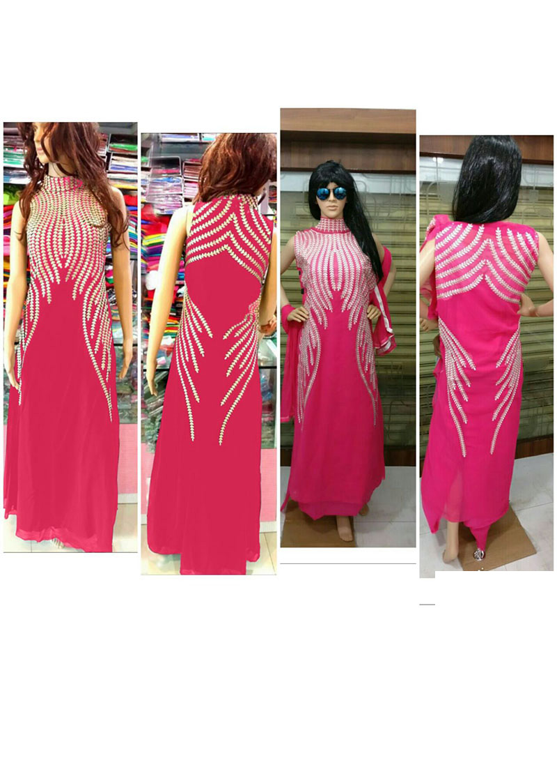 Pink106 Georgette Front & Back Side Full Embroidery Work PartyWear Suit at Zikimo - Zikimo.com - Original Indian Bridal Lehengas Collection