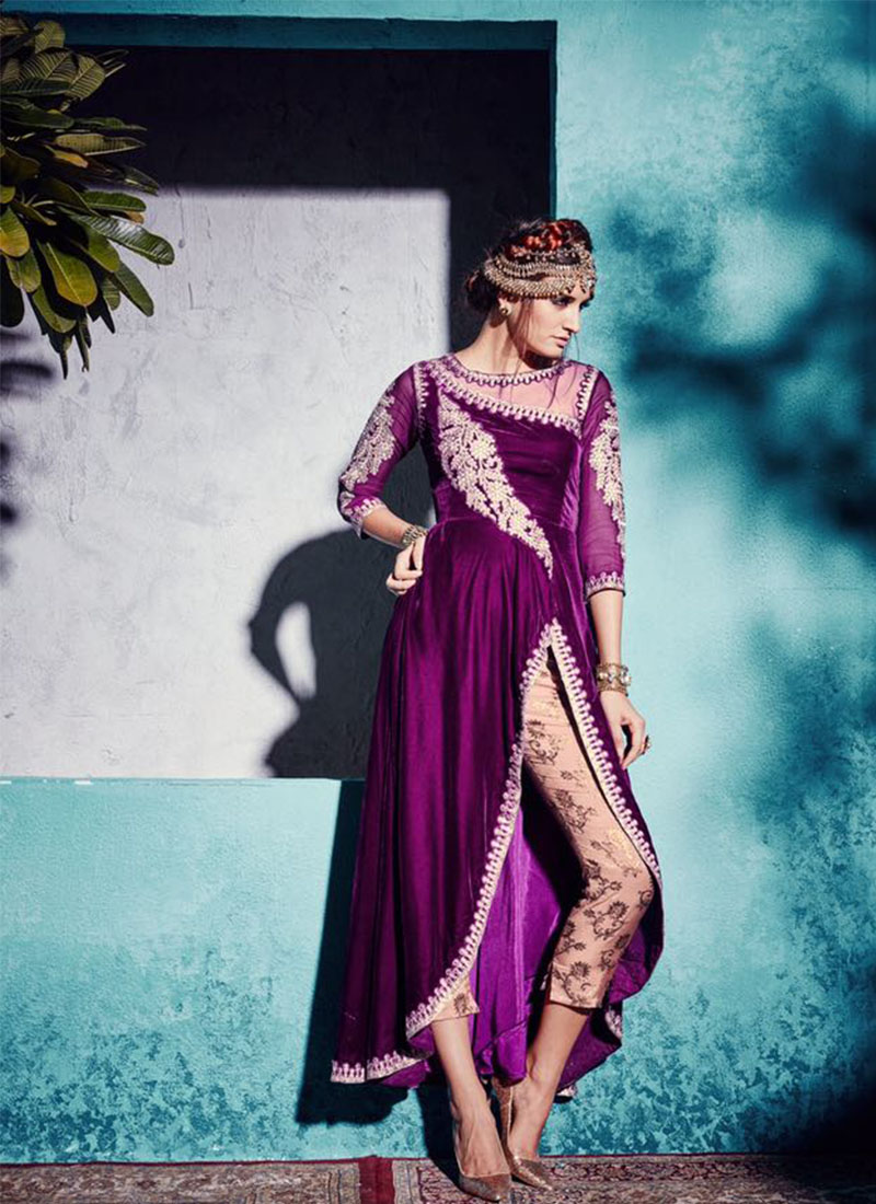 Purple17001 Velvet Wedding Party Winter Straight Suit at Zikimo - Zikimo.com - Original Indian Bridal Lehengas Collection