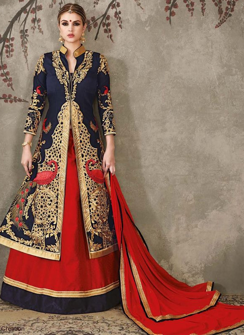 Red Blue2308 Chiffon Silk Embroidery Wedding/Sangeet Party Lehenga choli at Zikimo - Zikimo.com - Original Indian Bridal Lehengas Collection