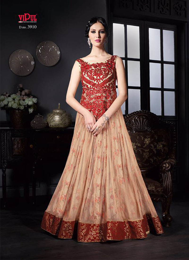 Red3910 Net RawSilk Floral PrintedWedding FloorLength Anarkali Suit at Zikimo - Zikimo.com - Original Indian Bridal Lehengas Collection