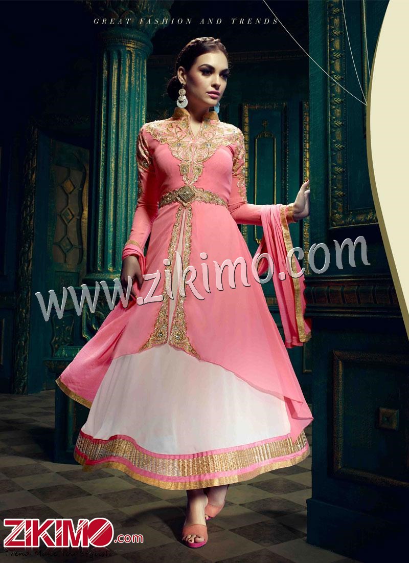 Royal Palace 9001 PINK & OFF WHITE GEORGETTE DESIGNER SALWAR KAMEEZ - Zikimo.com - Original Indian Bridal Lehengas Collection