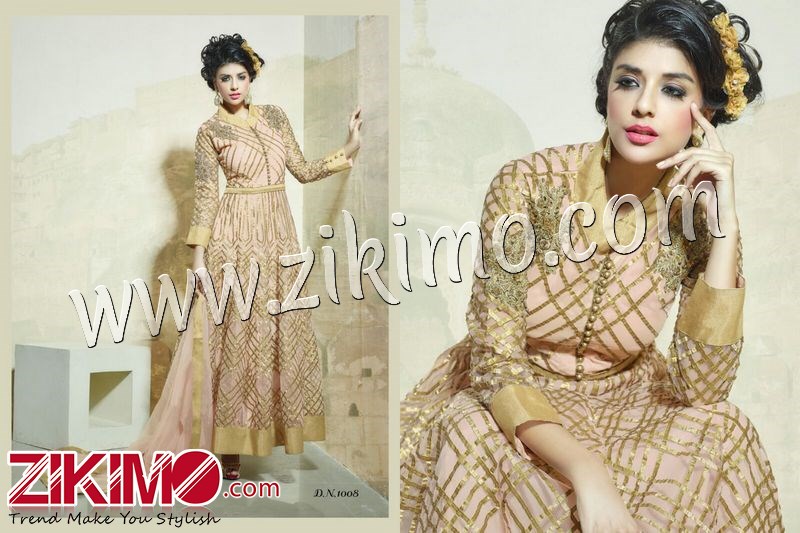 Rutbaa 1008 Wedding/Party Wear Beige Net Ribbon And Hand Work Anarkali Suit - Zikimo.com - Original Indian Bridal Lehengas Collection