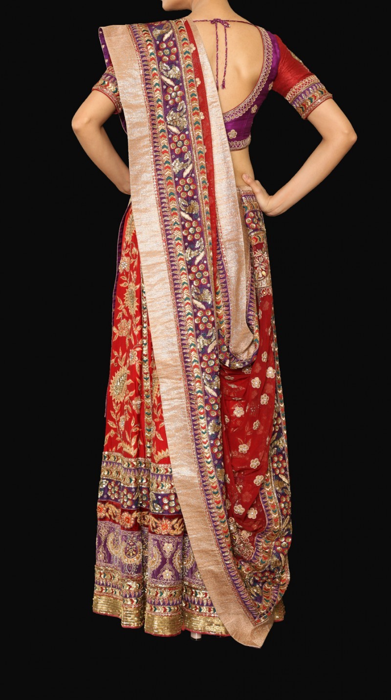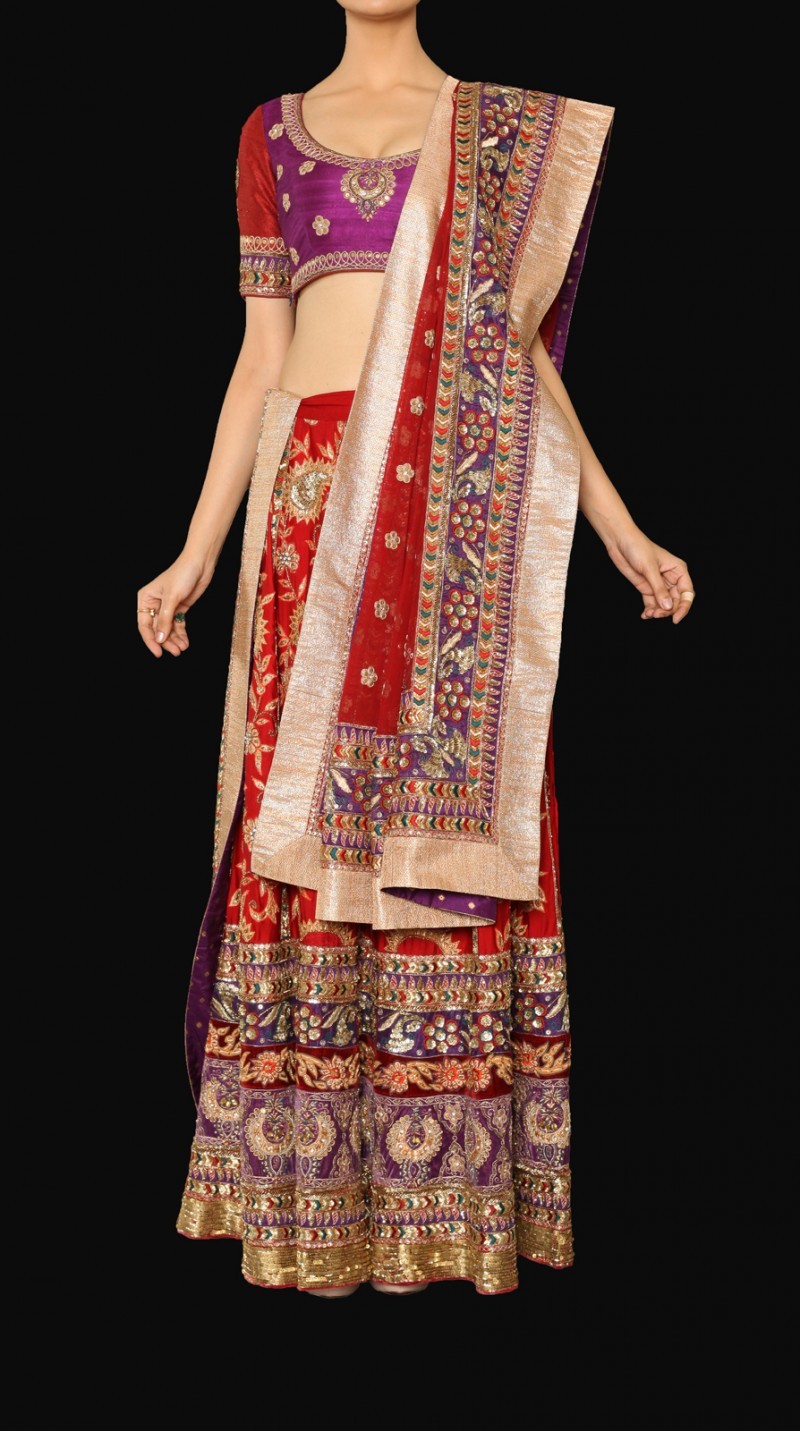 A heavy gota and zardosi work embroidered lehenga on silk cloth