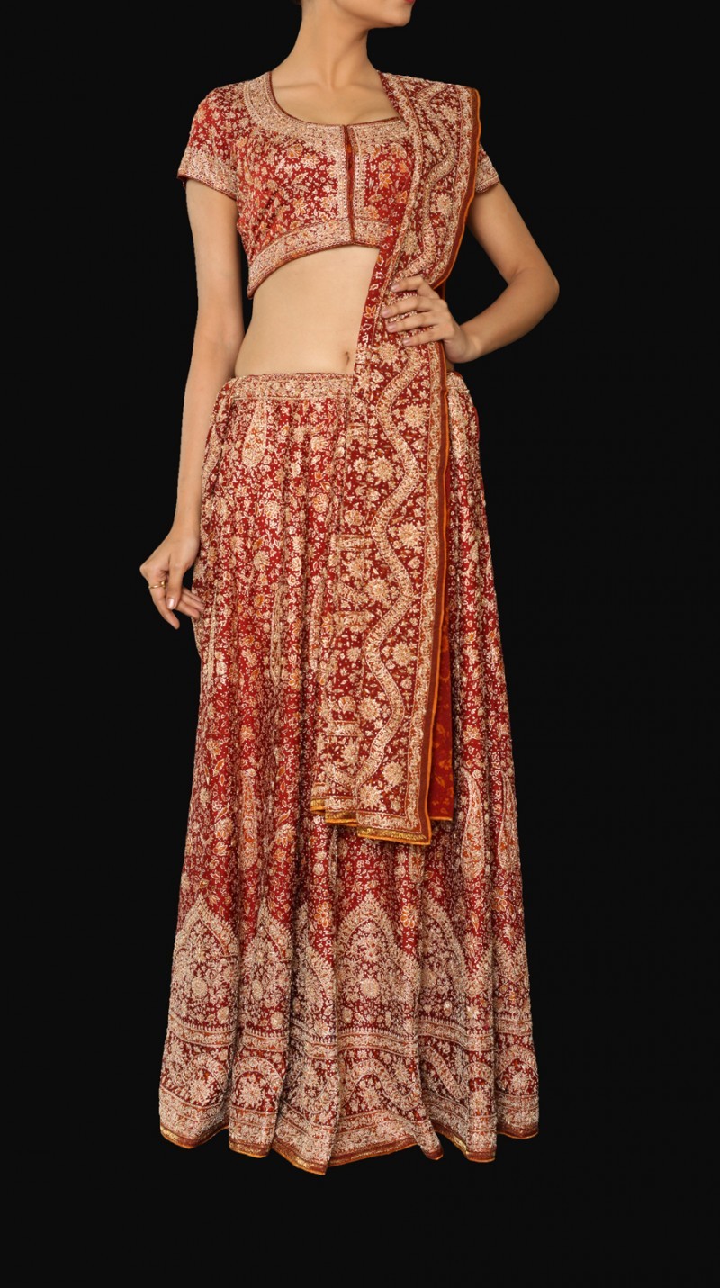 Thrilling red color heavy embroidered designer lehenga - Zikimo.com - Original Indian Bridal Lehengas Collection