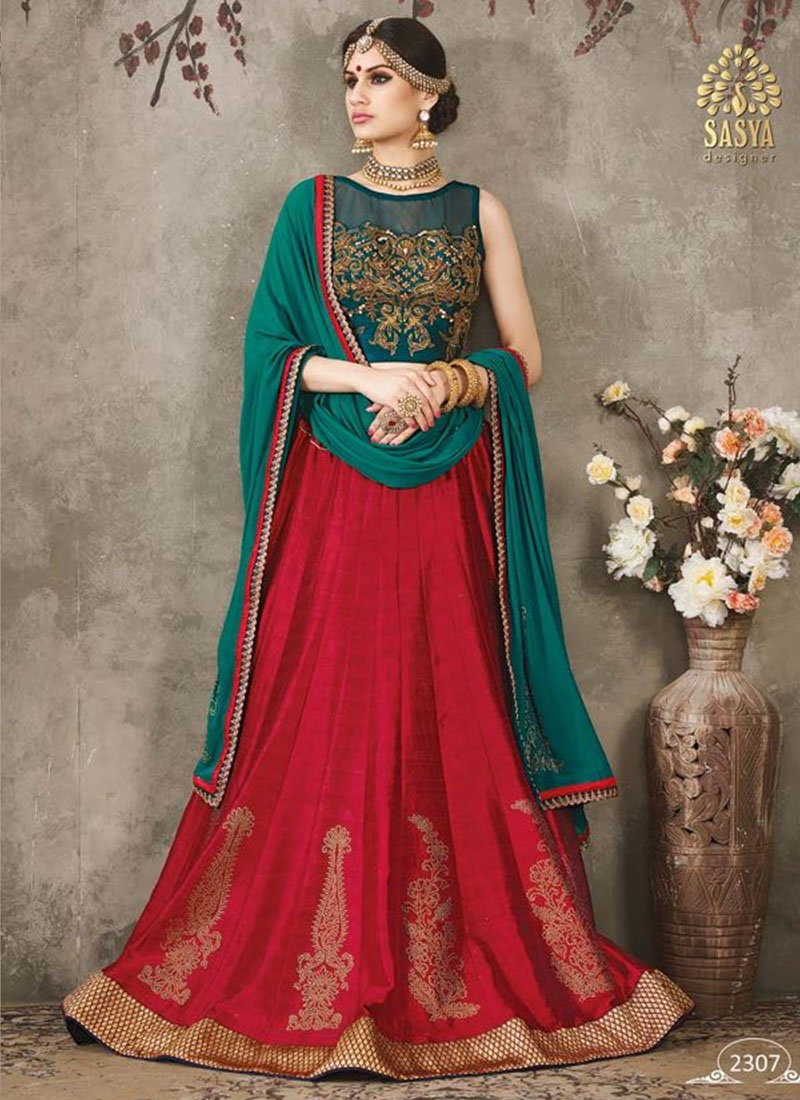 Silk Top With Silk Bottom and Two Tone Dupatta.Note: This is Semi stitched and needs to be fitted and stitched according to your size. If You Opt Stitching Option, Measurement chart will send to you via email after placing order