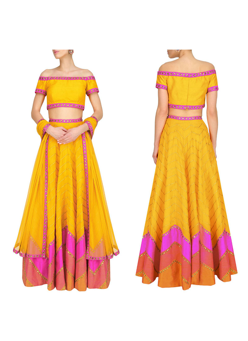 Navratri Special Embroidered Raw Silk Zigzag Digital Printed Lehenga With Yellow Choli and Dupatta. Note: This is Semistitched and needs to be fitted and stitched according to your size. If You Opt Stitching Option, Measurement chart will send to you via email after placing order.