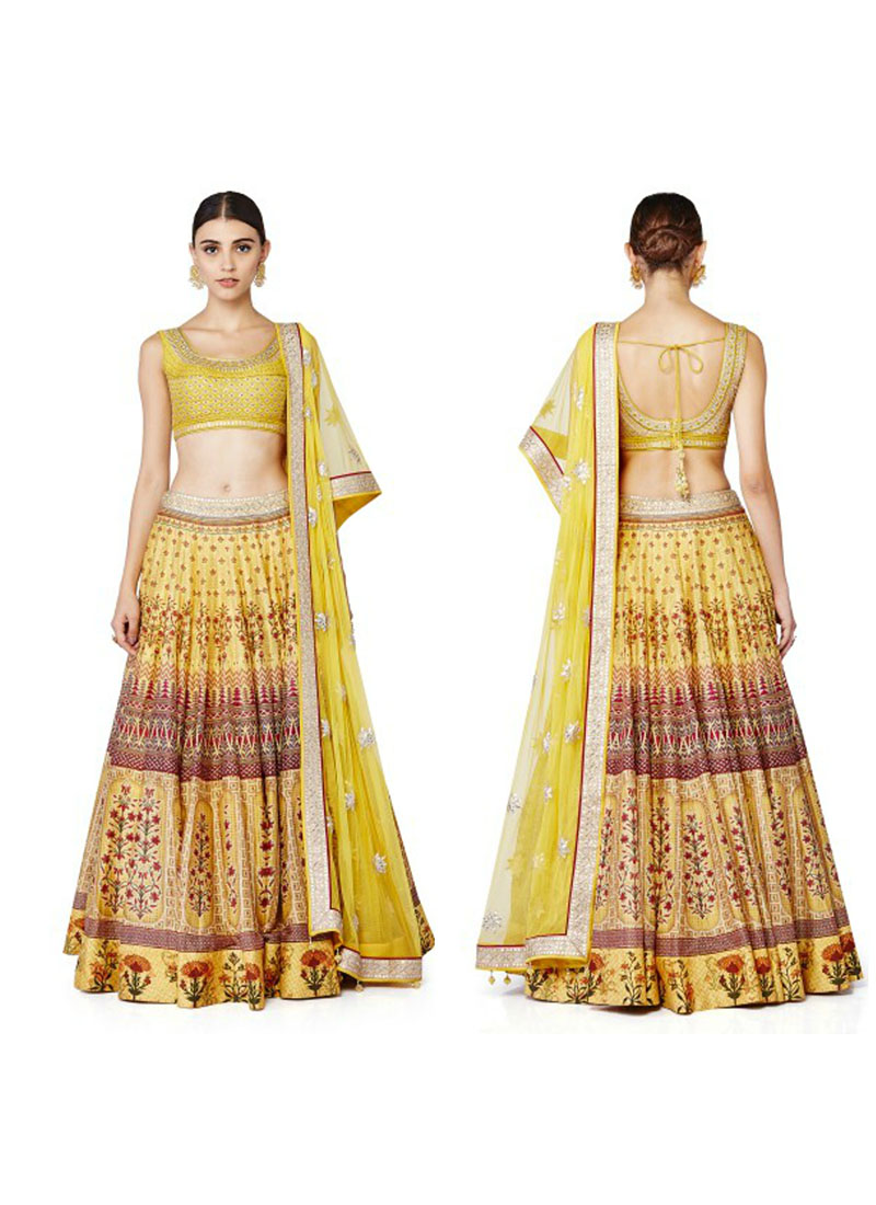 Yellow RawSilk DigitalPrinted Embroidered Navratri Lehenga Choli at Zikimo - Zikimo.com - Original Indian Bridal Lehengas Collection