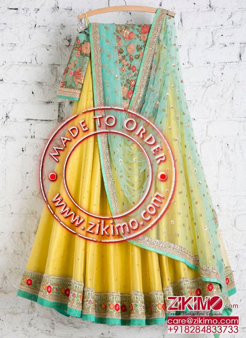 Heavy Work Silk Lehenga With Silk Choli Net Dupatta. Note: This is Made On Order Dress and needs to be fitted and stitched according to your size. If You Opt Stitching Option, Measurement chart will send to you via email after placing order.