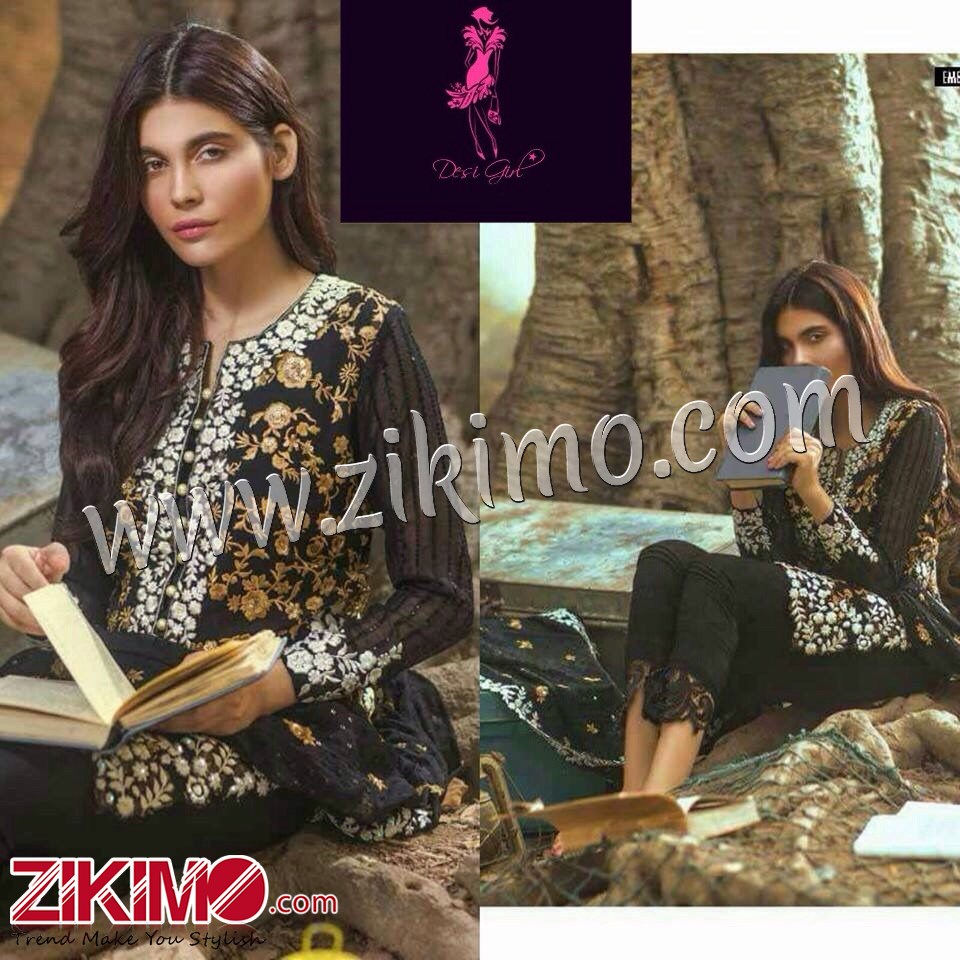 Zikimo Desi Girl Embroidered Georgette Pants/Palazzo Pakistani Suits With Chiffon Dupatta And Shantoon Bottom