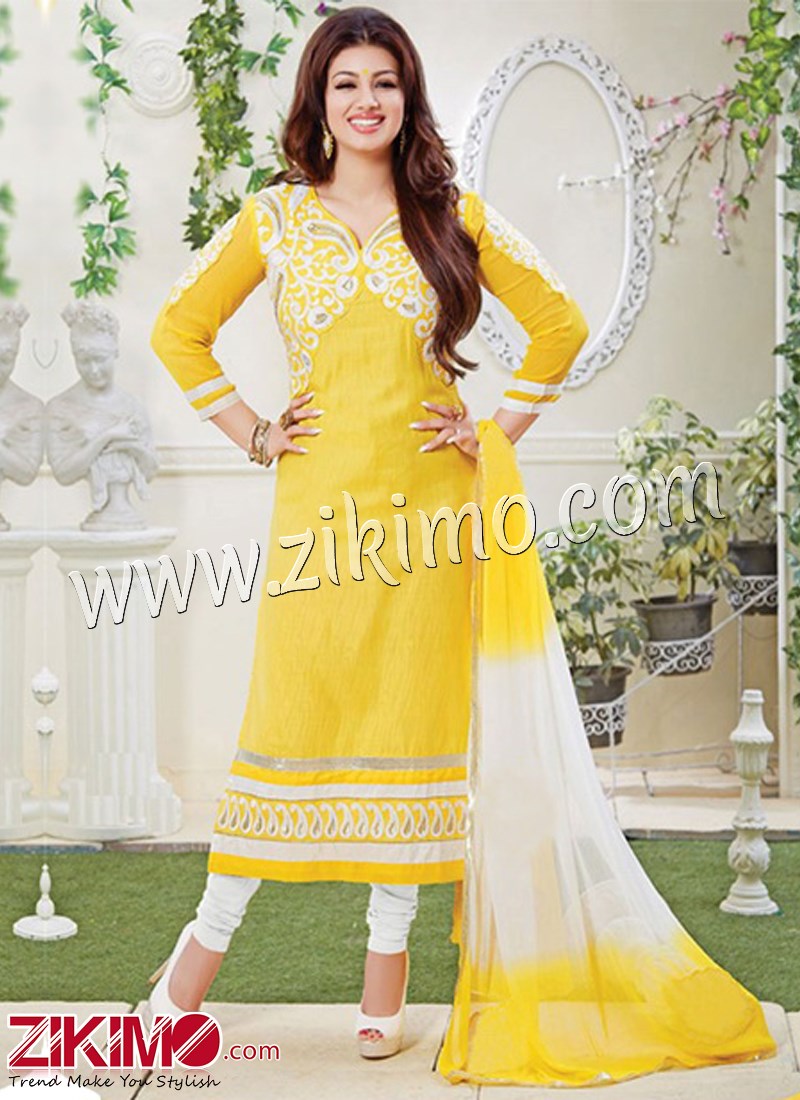 Zikimo Ayesha Takia Yellow Cotton Casual Wear Straight Suit With Chiffon Dupatta and Shantoon Bottom