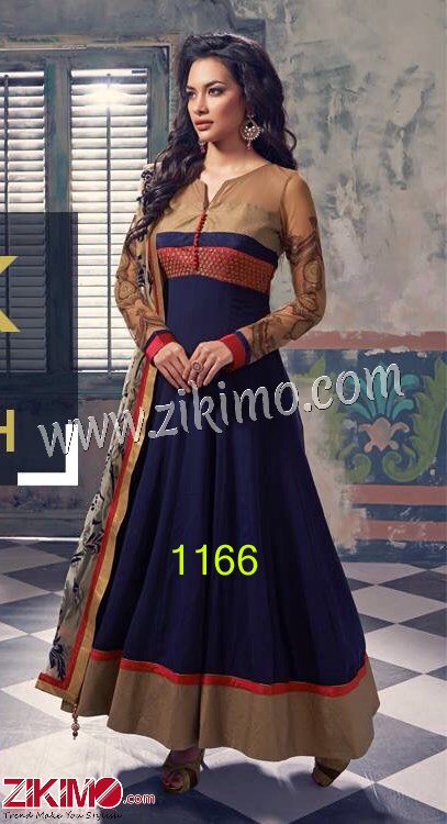 Designer Georgette Blue And Biege Wedding Wear Ankle Length Anarkali Suit With Net Dupatta With Shantoon Bottom
