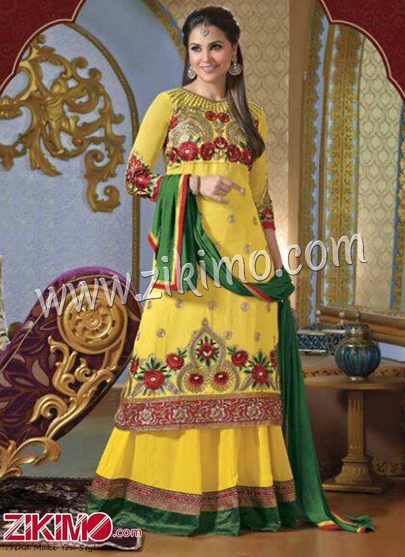 Zikimo Lara Dutta Yellow Full Emroidered Floor Length Party Wear Lehenga - Zikimo.com - Original Indian Bridal Lehengas Collection