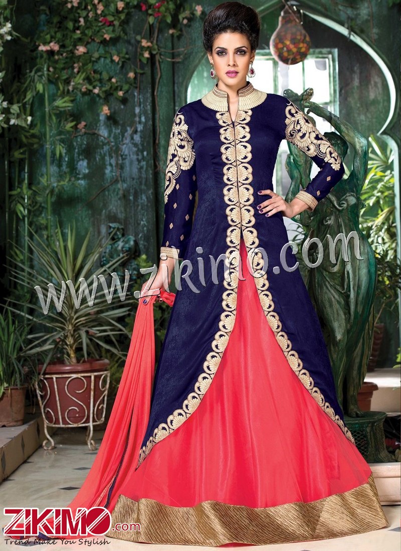 ZIKIMO PARTY WEAR FLOOR LENGTH DESIGNER BLUE GOWN - Zikimo.com - Original Indian Bridal Lehengas Collection