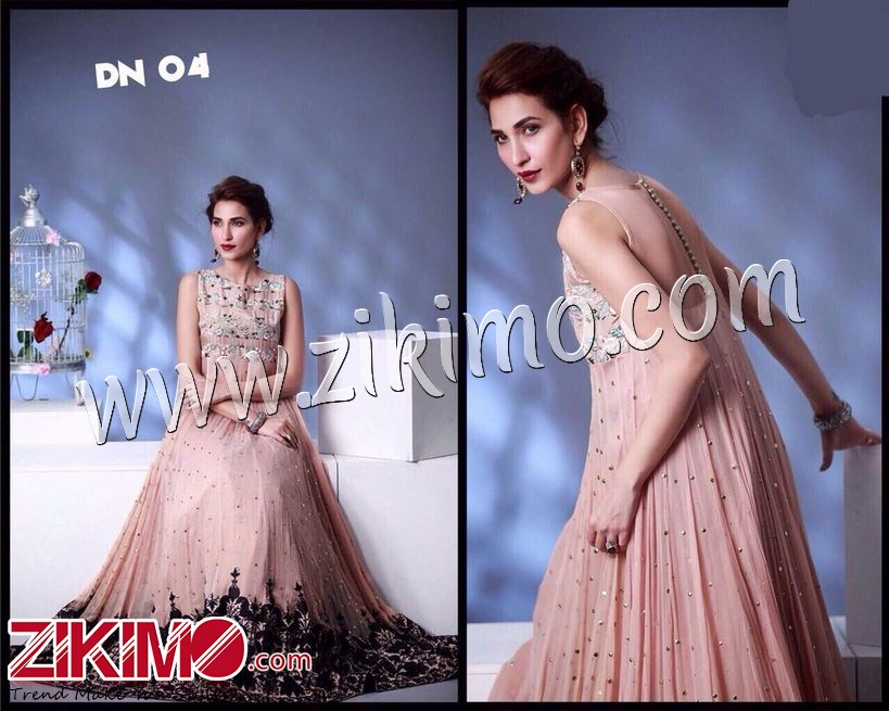 Zikimo Rosemeen Pakistani Printed Georgette Light Pink Embroidered A Line Suit - Zikimo.com - Original Indian Bridal Lehengas Collection